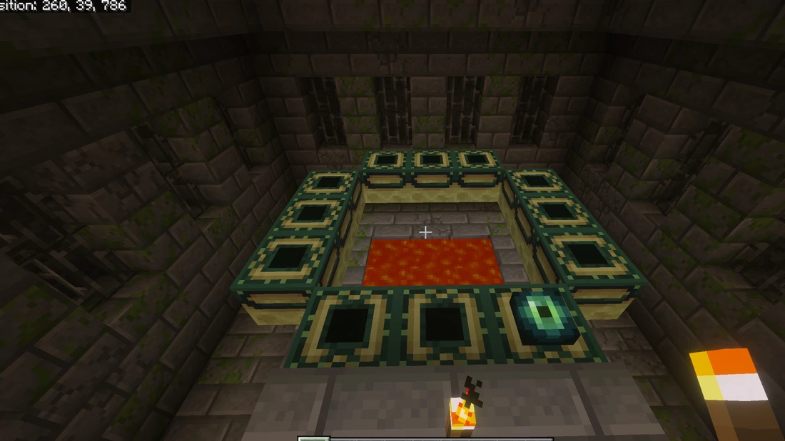 The Ender Portal usually generates far from the spawn point, but not in this seed. You will find the Ender Portal no further than a hundred blocks away. This is quite a rare occurrence, but there is nothing special about the village itself besides the single Ender Pearl you can find in the chests. In the screenshots, you can see the exact place to dig down for the portal.